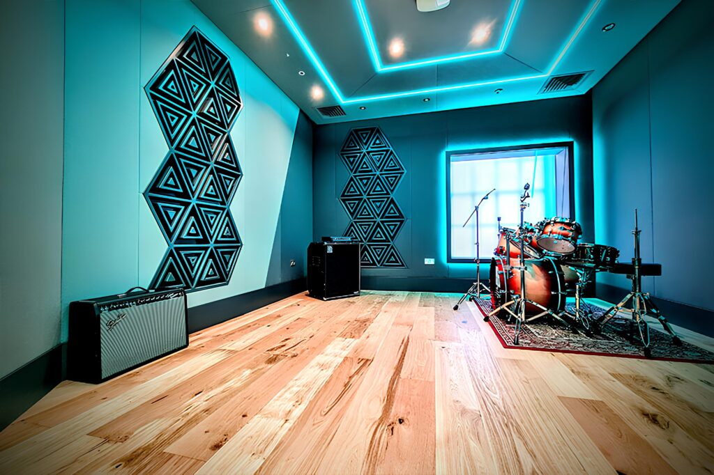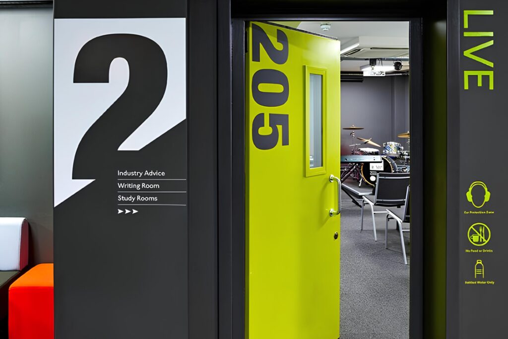 We worked closely with Veale Associates, led by Eddie Veale, whose award-winning acoustic and studio design expertise shaped the technical spaces. This collaboration ensured professional-grade studios and live rooms, matching industry standards and enhancing the learning environment.